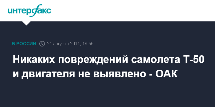 Никаких повреждений самолета Т-50 и двигателя не выявлено - ОАК