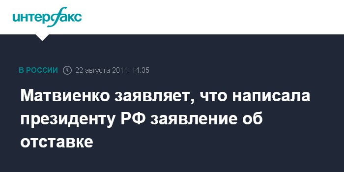Матвиенко заявляет, что написала президенту РФ заявление об отставке
