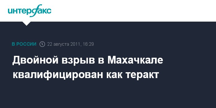 Махачкала. 22 августа. INTERFAX.RU - Два взрыва в Махачкале, в результате которых были ранены 16 человек, квалифицированы как теракт.