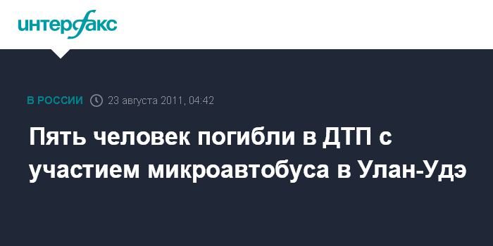 Чита. 23 августа. ИНТЕРФАКС-СИБИРЬ - В Улан-Удэ (Бурятия) при столкновении автомобиля ВАЗ-2106 и микроавтобуса "Истана" погибли пять человек, в том числе двое детей, еще два человека пострадали, сообщает пресс-служба ГУ МЧС Бурятии.