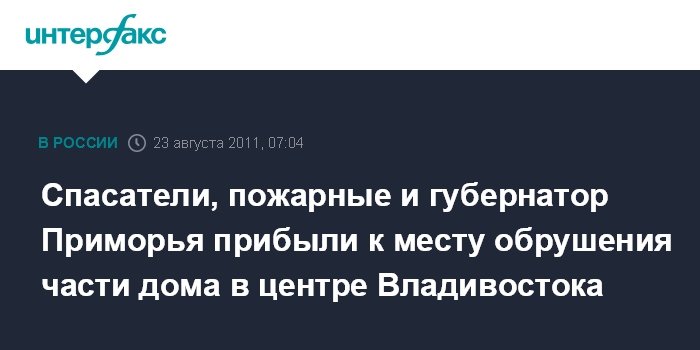 Владивосток. 23 августа. ИНТЕРФАКС-ДАЛЬНИЙ ВОСТОК - Спасатели приступили к разбору рухнувшей части дома во Владивостоке на улице Посьетской.