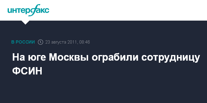 Москва. 23 августа. INTERFAX.RU - Сотрудница Федеральной службы исполнения наказаний пострадала от разбойников на юге Москвы, сообщил "Интерфаксу" источник в правоохранительных органах.
