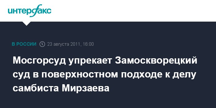 Мосгорсуд упрекает Замоскворецкий суд в поверхностном подходе к делу самбиста Мирзаева
