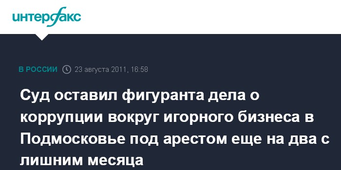 Суд оставил фигуранта дела о коррупции вокруг игорного бизнеса в Подмосковье под арестом еще на два с лишним месяца