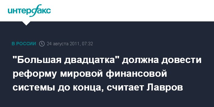 "Большая двадцатка" должна довести реформу мировой финансовой системы до конца, считает Лавров