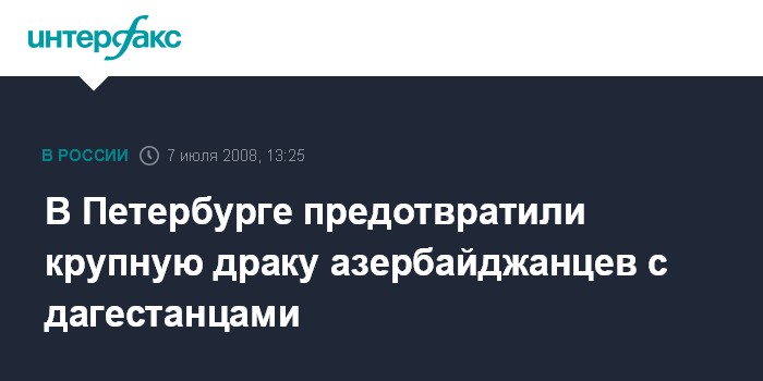 Москва. 7 июля. INTERFAX.RU - В Невском районе Петербурга сотрудники милиции предотвратили крупную драку дагестанцев и азербайджанцев, сообщил "Интерфаксу" источник в правоохранительных органах. "В милицию Невского района поступил сигнал, что на Леснозаводской улице у кафе "Куракина дача" около 50 человек начали выяснять отношения", - сказал собеседник агентства, добавив, что прибывшие на место наряды милиции предотвратили драку.