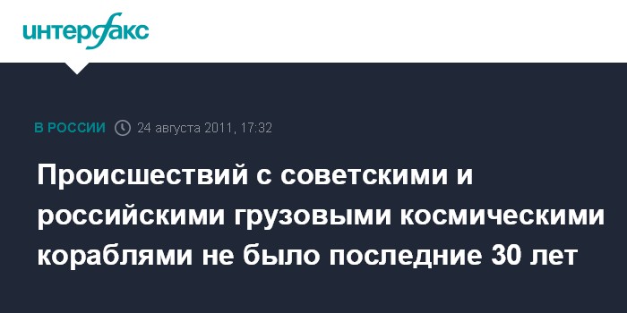 Происшествий с советскими и российскими грузовыми космическими кораблями не было последние 30 лет