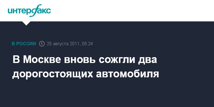 Москва. 25 августа. ИНТЕРФАКС - На юге Москвы неизвестные совершили поджог двух дорогих автомобилей.