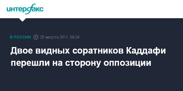 Рим. 25 августа. INTERFAX.RU - Министр здравоохранения Ливии Мухаммед Хиджази и один из руководителей службы разведки генерал Халифа Мухаммед Али объявили о решении перейти на сторону оппозиции, передает в четверг итальянское телевидение.