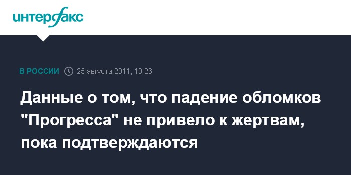 Данные о том, что падение обломков "Прогресса" не привело к жертвам, пока подтверждаются