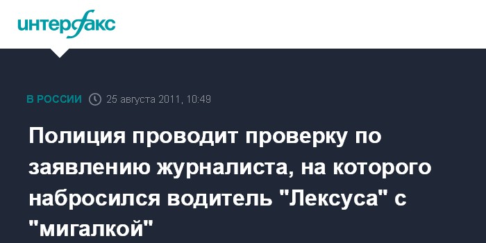 Полиция проводит проверку по заявлению журналиста, на которого набросился водитель "Лексуса" с "мигалкой"