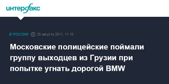 Москва. 25 августа. INTERFAX.RU - Сотрудники правоохранительных органов задержали в Москве этническую преступную группу, специализировавшуюся на угоне дорогостоящих автомобилей, все ее члены - уроженцы Грузии.