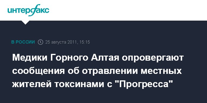 Медики Горного Алтая опровергают сообщения об отравлении местных жителей токсинами с "Прогресса"