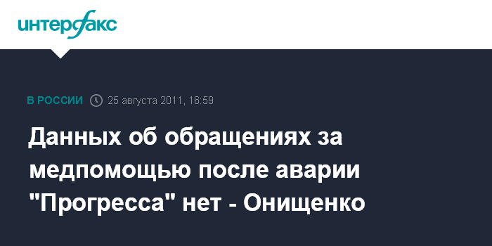 Данных об обращениях за медпомощью после аварии "Прогресса" нет - Онищенко