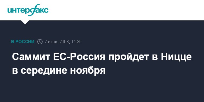 Саммит ЕС-Россия пройдет в Ницце в середине ноября