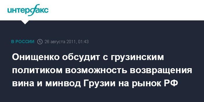 Г.Онищенко заявил, что в Роспотребнадзор поступают обращения по поводу возможности возобновления поставок в РФ грузинского вина и минеральной воды.