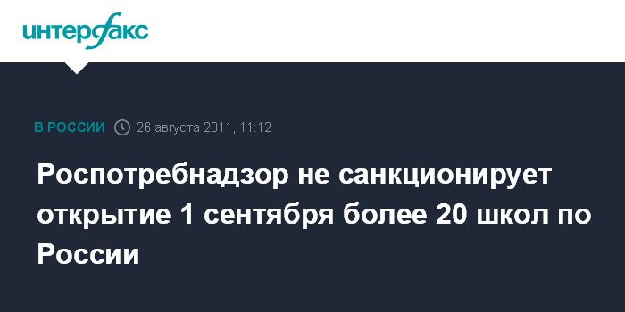 Москва. 26 августа. INTERFAX.RU - Более двух десятков российских школ не смогут открыться 1 сентября из-за несоблюдения требований, сообщил журналистам в пятницу руководитель Роспотребнадзора, главный государственный санитарный врач РФ Геннадий Онищенко.