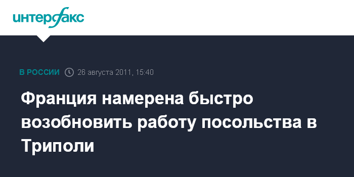"Процесс возобновления работы посольства Франции в Триполи начался. Ожидается, что наше посольство в скором времени вновь откроется", - заявил он на брифинге в Париже.