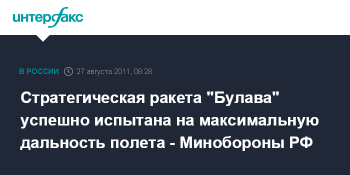 Это был второй испытательный пуск "Булавы" со штатного носителя - АПЛ "Юрий Долгорукий". Предыдущий был успешно проведен 28 июня. Всего же с начала испытаний ракеты было проведено 16 пусков, семь из которых считаются аварийными.
