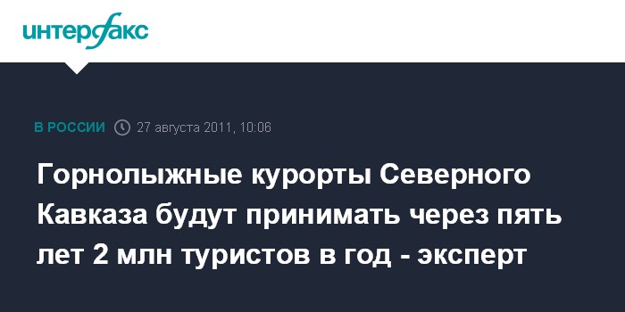 Москва. 27 августа. INTERFAX.RU - Горнолыжные курорты Северного Кавказа через 4-5 лет смогут принимать ежегодно примерно 2 млн туристов, считает генеральный директор ОАО "Курорты Северного Кавказа" Алексей Невский. "Такое число туристов будет ежегодно приезжать на пять новых горнолыжных курортов, которые сейчас создаются на Северном Кавказе", - сказал А.Невский порталу "Интерфакс-Туризм".