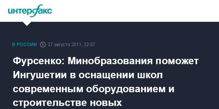 Магас. 27 августа. ИНТЕРФАКС-ЮГ - Министр образования и науки РФ Андрей Фурсенко считает, что проблемы в образовательной системе во всех регионах России, в том числе Ингушетии, одинаковые, и главная из них - перегруженность школ.