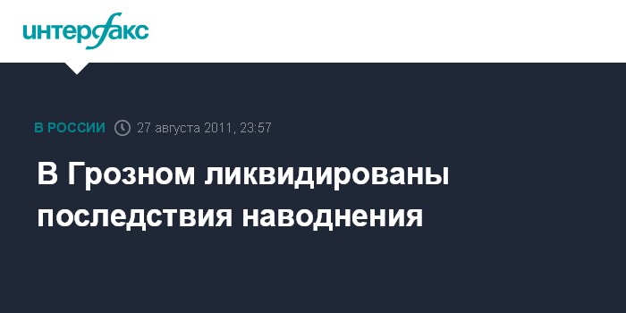 Грозный. 27 августа. ИНТЕРФАКС - В чеченской столице Грозном спасателями ликвидированы последствия наводнения, сообщили "Интерфаксу" в пресс-службе МЧС по ЧР.