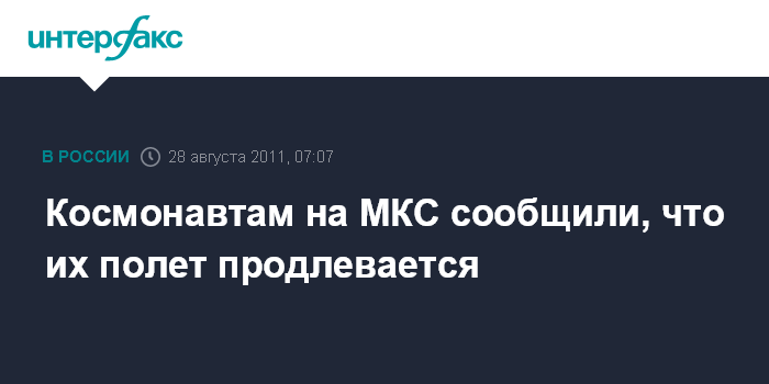 Вашингтон. 28 августа. ИНТЕРФАКС-АВН - Экипаж Международной космической станции (МКС) проинформировали о том, что запланированное на 8 сентября приземление корабля "Союз ТМА-21" с тремя космонавтами перенесено на более поздний срок.