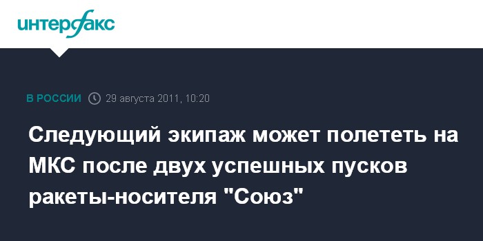 Следующий экипаж может полететь на МКС после двух успешных пусков ракеты-носителя "Союз"