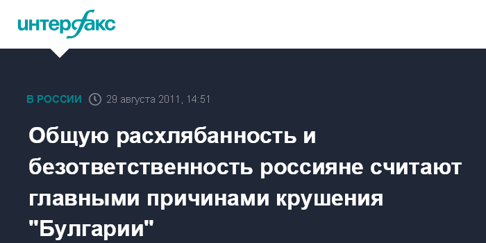 Общую расхлябанность и безответственность россияне считают главными причинами крушения "Булгарии"