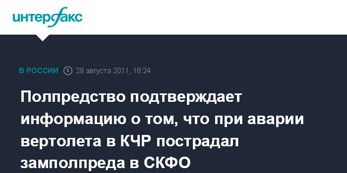 Полпредство подтверждает информацию о том, что при аварии вертолета в КЧР пострадал замполпреда в СКФО