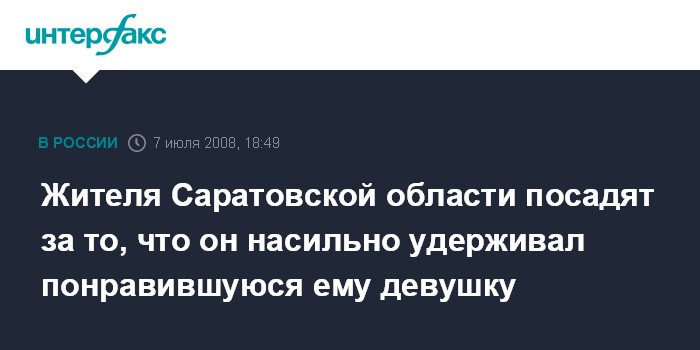 Москва. 7 июля. INTERFAX.RU - Мировой судья Ершовского района Саратовской области приговорил жителя города Балаково Владимира Лавицкого к 2 месяцам колонии общего режима, признав его виновным по ч.1 ст.127 УК РФ (незаконное лишение свободы).