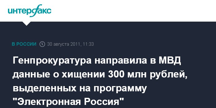 Генпрокуратура направила в МВД данные о хищении 300 млн рублей, выделенных на программу "Электронная Россия"