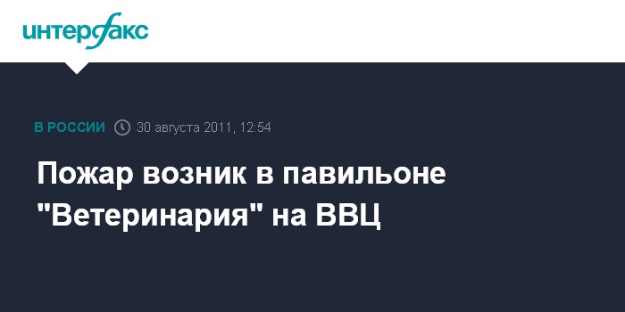 Москва. 30 августа. INTERFAX.RU - Возгорание произошло на территории Всероссийского выставочного центра в павильоне "Ветеринария", сообщил "Интерфаксу" источник в правоохранительных органах.