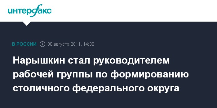 Бишкек. 30 августа. INTERFAX.RU - Руководитель администрации президента России Сергей Нарышкин возглавил группу по формированию столичного федерального округа.