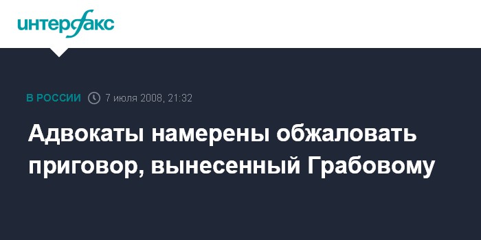 Москва. 7 июля. ИНТЕРФАКС - Адвокаты "целителя" Григория Грабового, осужденного за мошенничество на 11 лет заключения, заявили о намерении обжаловать приговор суда.