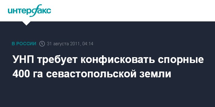 "Согласно украинскому законодательству и межгосударственным российско-украинским договоренностям, эти 400 гектаров земли должны быть возвращены на баланс Украины, а уже впоследствии, при необходимости, могут быть проданы с аукциона, а средства направлены в государственный и городской бюджет Севастополя", - подчеркнул глава Крымской организации УНП.