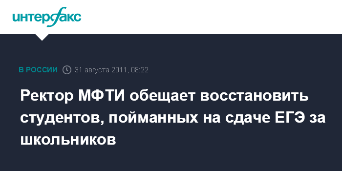 Ректор МФТИ обещает восстановить студентов, пойманных на сдаче ЕГЭ за школьников