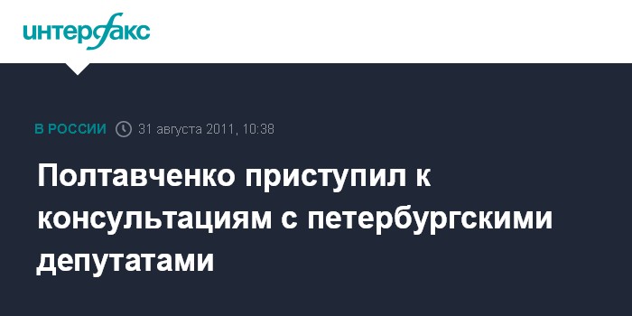 Санкт-Петербург. 31 августа. INTERFAX.RU - Исполняющий обязанности губернатора Санкт-Петербурга Георгий Полтавченко накануне своего утверждения в должности начал проводить консультации с депутатами петербургского парламента, сообщил "Интерфаксу" источник в Законодательном собрании.