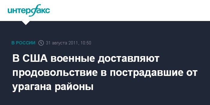Лондон. 31 августа. INTERFAX.RU - Военные по воздуху доставляют продовольствие и медикаменты жителям американского штата Вермонт, пострадавшего от наводнения, вызванного ураганом "Айрин", сообщает британская телерадиокорпорация BBC.