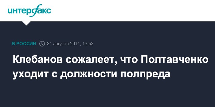 Санкт-Петербург. 31 августа. INTERFAX.RU - Полпред президента РФ в Северо-Западном федеральном округе Илья Клебанов сожалеет, что Георгий Полтавченко с уходом на новую работу в Петербург перестанет быть его коллегой.