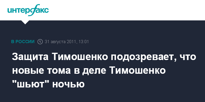 Киев. 31 августа. INTERFAX.RU - Защитник экс-премьера Юлии Тимошенко Николай Сирый заявляет, что новые тома "газового дела" не должны формироваться ночью.