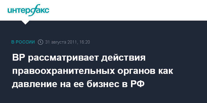 Москва. 31 августа. INTERFAX.RU - BP рассматривает действия правоохранительных органов по выемке документов в ее офисе как давление на бизнес компании в РФ, сообщил журналистам глава BP в России Джереми Хак.
