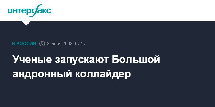 Берн. 8 июля. ИНТЕРФАКС - Научный мир замер в ожидании - через несколько часов на границе Швейцарии и Франции запустят самый крупный из когда-либо существовавших ускоритель элементарных частиц, так называемый Большой андронный коллайдер, передает канал "Вести".