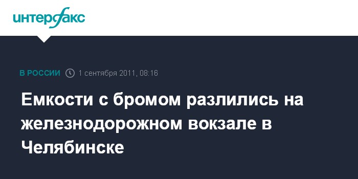 Как сообщил агентству "Интерфакс-Урал" руководитель пресс-службы Уральского регионального центра МЧС РФ Вадим Гребенников, от диспетчера МЧС поступило сообщение о разливе ядовитого вещества, однако оказалось, что в грузовом составе разлились порядка 8-10 емкостей с бромом по 5 литров каждая. На место прибыло подразделение пожарной части, они провели частичную дезактивацию - засыпали вещество песком и остудили пеной.