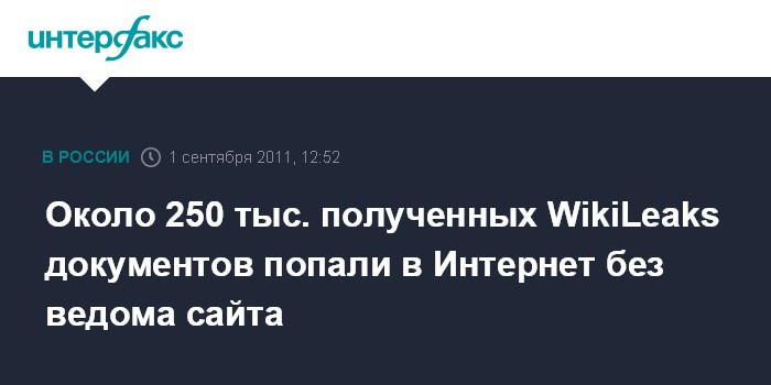 Около 250 тыс. полученных WikiLeaks документов попали в Интернет без ведома сайта