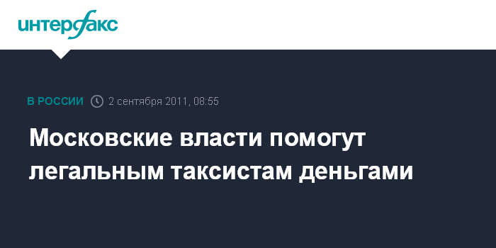 Москва. 2 сентября. ИINTERFAX.RU - В целях поддержки легальных таксомоторных перевозок московские власти будут предоставлять субсидии предпринимателям, сообщил "Интерфаксу" источник в горадминистрации в пятницу.