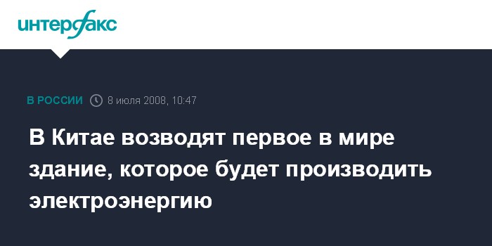 В Китае возводят первое в мире здание, которое будет производить электроэнергию