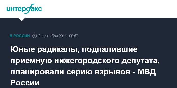 Юные радикалы, подпалившие приемную нижегородского депутата, планировали серию взрывов - МВД России