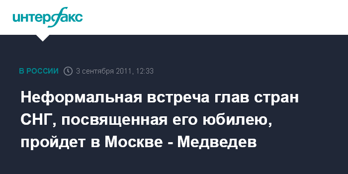 Неформальная встреча глав стран СНГ, посвященная его юбилею, пройдет в Москве - Медведев
