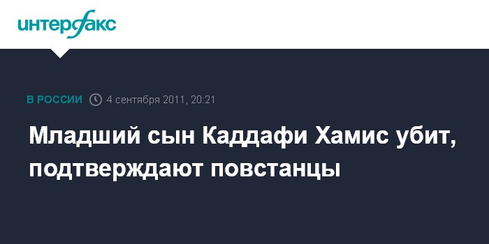 Младший сын Каддафи Хамис убит, подтверждают повстанцы